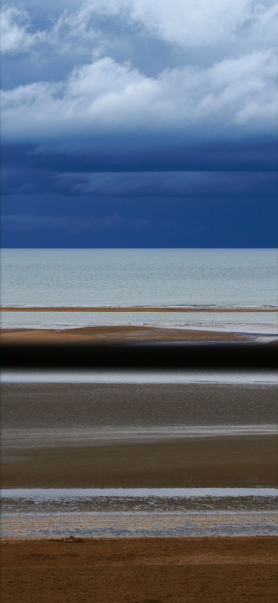Entre les flaques bleues de la marée d'hiver,